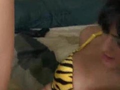 Lusty t-girls with big tits suck and fuck each others cocks